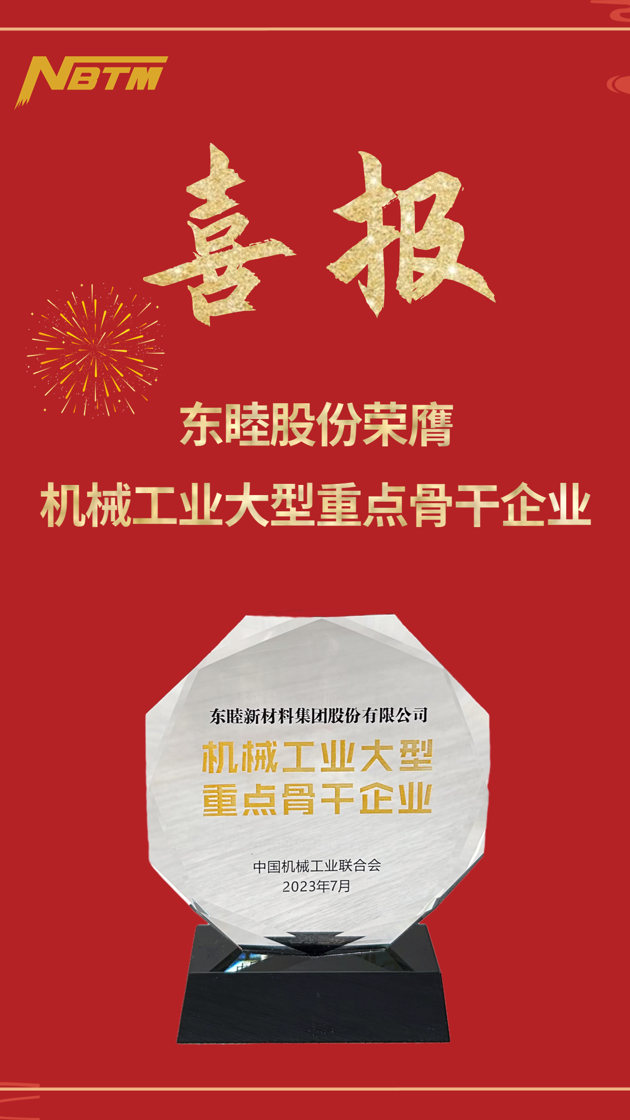 喜報(bào)!東睦股份榮膺“機(jī)械工業(yè)大型重點(diǎn)骨干企業(yè)”